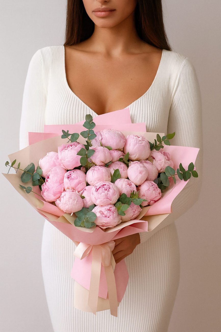 Букет из нежных пионов в розовом оттенке