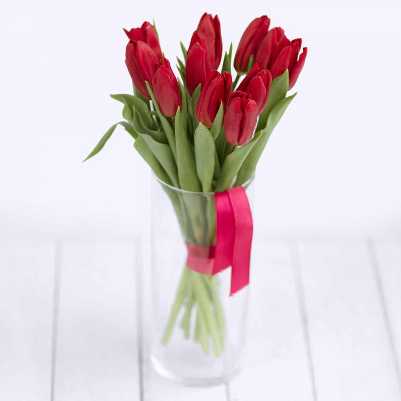 Букет красных тюльпанов под ленту — 11 штук