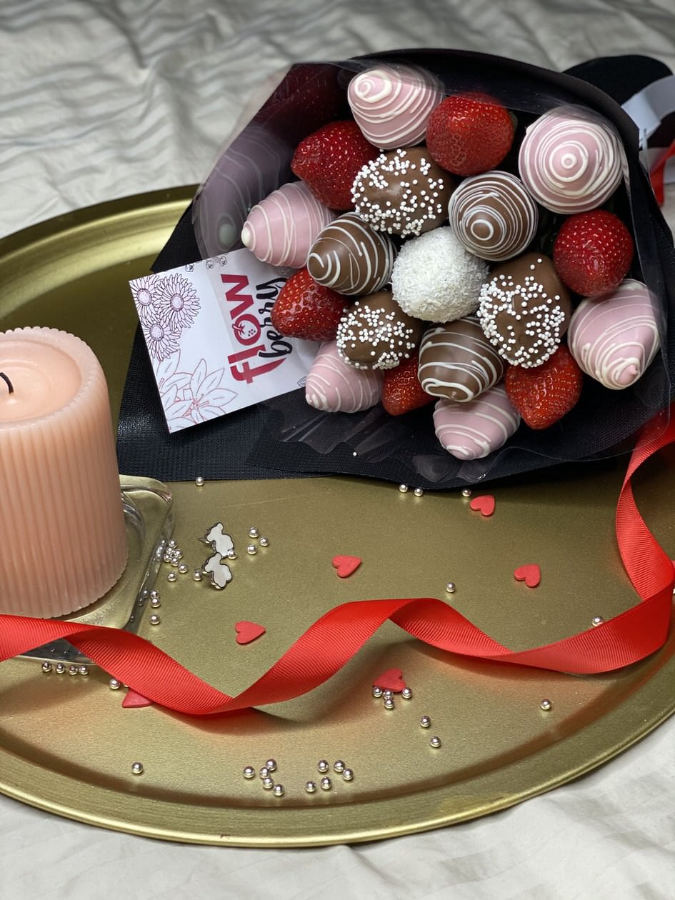 Мы с удовольствие поможем передать яркие чувства, нашими клубничными букетами