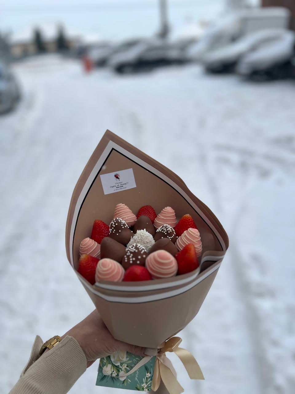 Заказывал доставку привезли вовремя,букет превзошёл все ожидания,клубника была свежая и очень вкусная,так что всем советую)